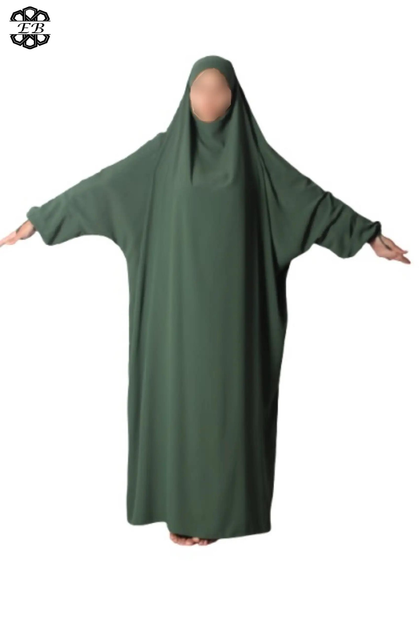Jilbab Soie de Médine 1 pièce El Bassira pour femmes musulmanes voilées. Disponible de la taille 52/1m55 à la taille 62/1m85-1m90. Tissu très léger et légèrement satiné, idéal pour les occasions et les périodes de fortes chaleurs.